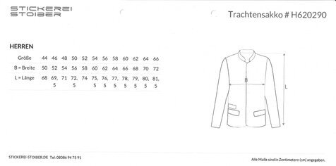 Die Bestellung muss folgende Details umfassen: 1. Beschreibung des dreiteiligen Gesamtpakets (Sakko/Blazer - Weste - Hemd/Bluse) mit jeweiliger Maßangabe (s. Tabellen), 2. Versandadresse und die Bankverbindung (IBAN-Nr.) und 3. Datum / Name / Unterschrift.